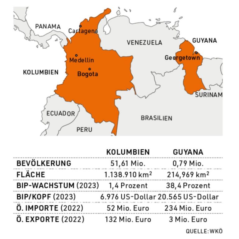 Mit Venezuela haben allerdings sowohl Guyana als auch Kolumbien einen mehr als unbequemen Nachbarn. Machthaber Nicolás Maduro, der das ölreiche, aber fast vollkommen abgewirtschaftete Land mit eiserner Hand führt, bedrängt das erfolgreiche Guyana nun mit Gebietsansprüchen, Kolumbien hat er fast drei von insgesamt sieben Millionen venezolanischen Flüchtlingen beschert.